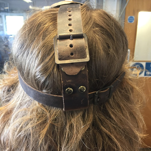 leather straps were fashioned from Horween vegetable tanned leather. The buckles received an intense antiquing. EVA foam padding was patterned to add comfort for the actors.